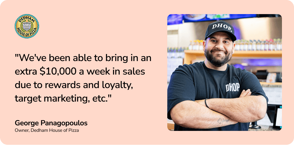 Loyalty programs aren’t just a feel-good marketing tool; they are a proven tool for driving revenue. According to a study by Forrester Research, companies with mature loyalty programs generate 77% more revenue from customer loyalty initiatives than those without a program. George Panagopoulos, owner of Dedham House of Pizza, states that loyalty and rewards programs have brought in an extra “$10,000 a week” in sales for his business.