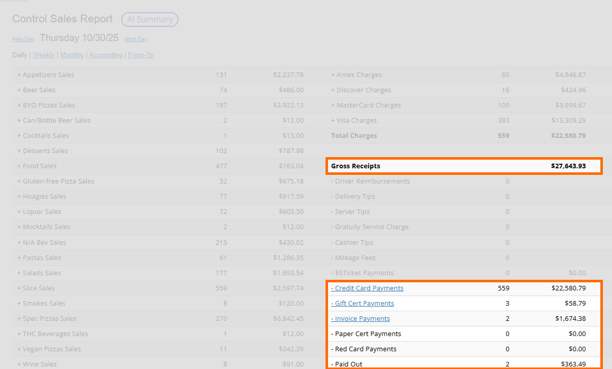 This is the foundational report for single-location operators — the one that gives you full visibility into receipts, payments, voids, discounts, refunds, and adjustments.