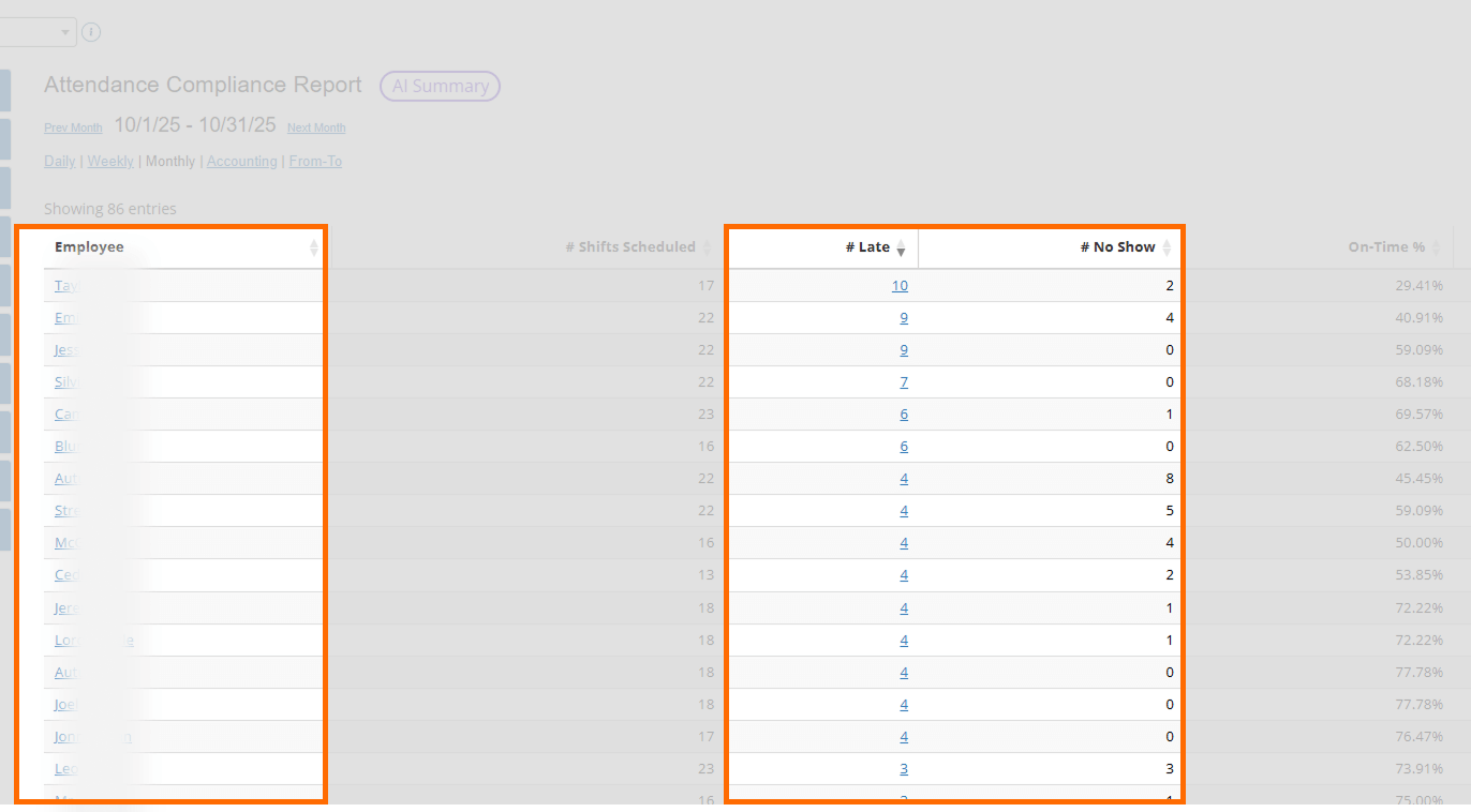 You’ll find these reports in FoodTec under “Attendance Compliance,” “Employee Salaries,” and “Labor Summary.”
