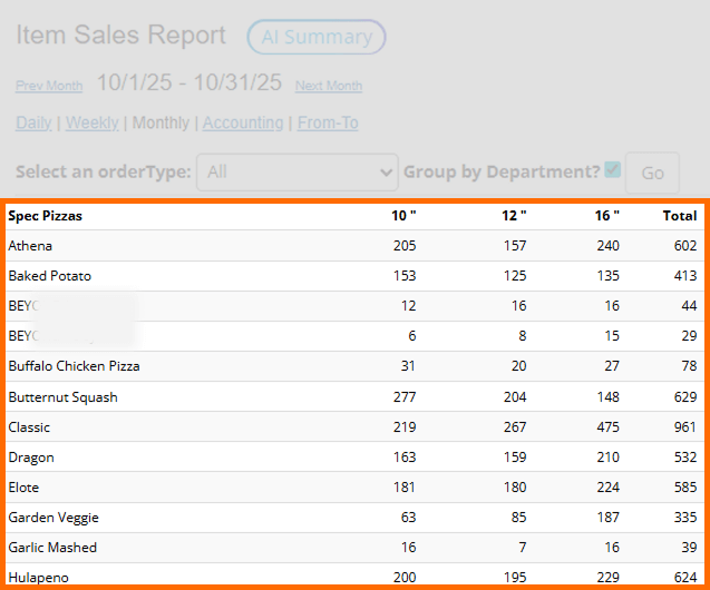 (FoodTec Report Name: Item Sales)